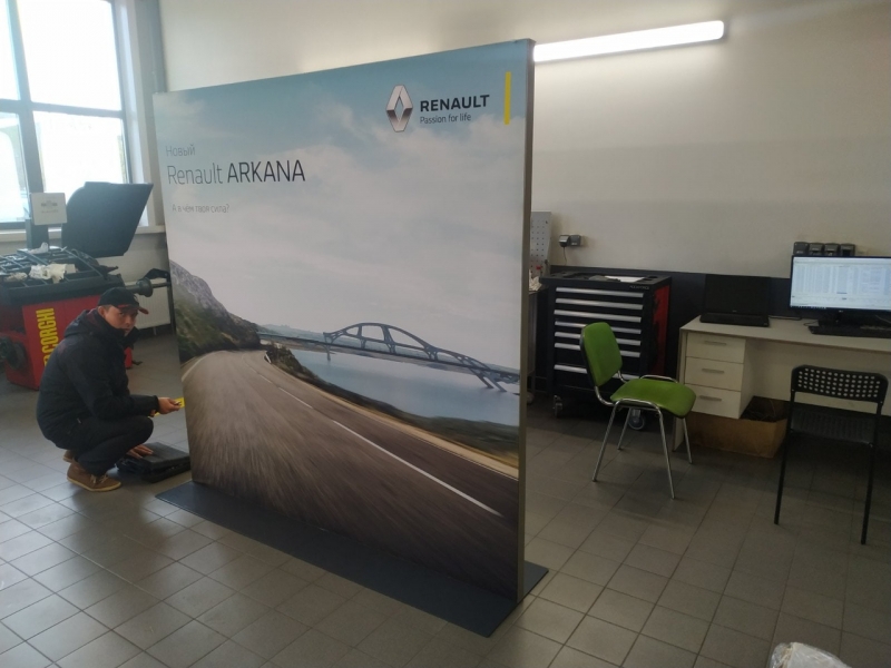 Замена полотна с рекламным изображением.